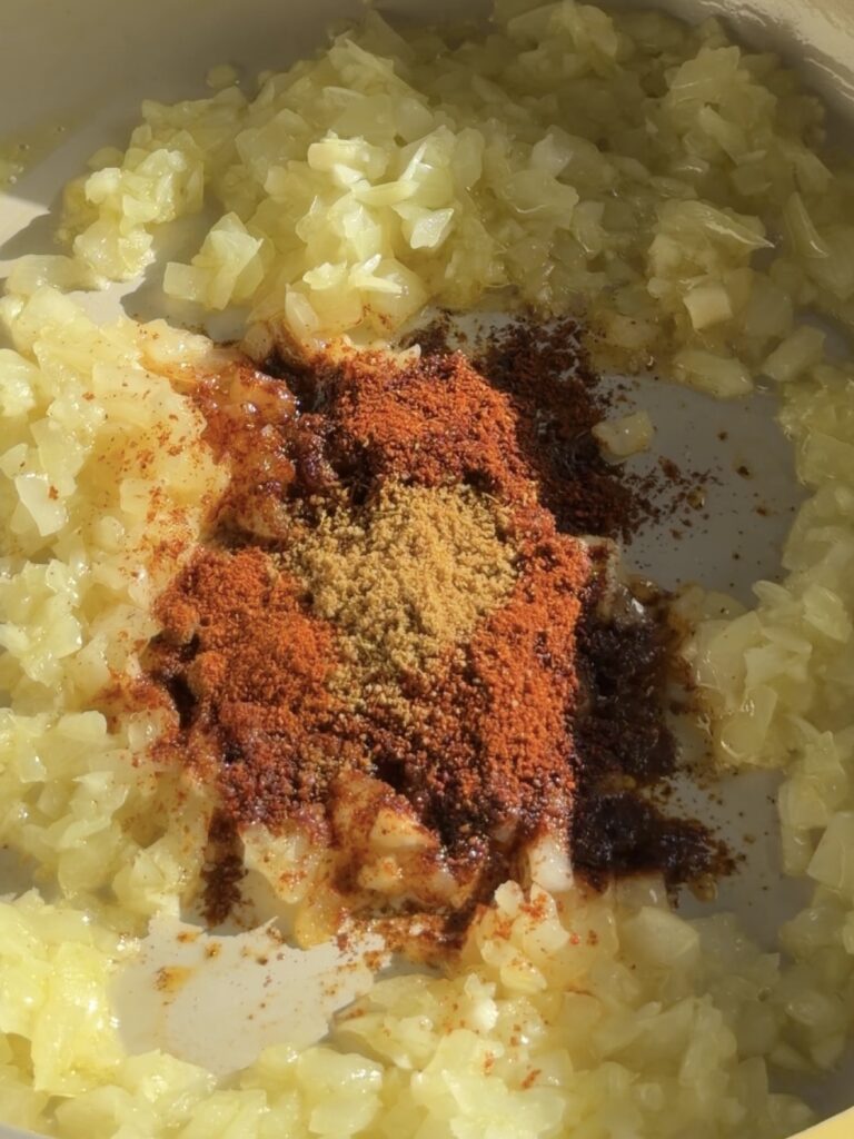 - Shakshuka Base: This North African/Middle Eastern tomato and pepper stew is all about layers of flavour – onions and garlic create the foundation, smoked paprika and cumin add warmth and depth, and charred red peppers bring a smoky sweetness that canned tomatoes alone can’t achieve. The key is simmering until the sauce thickens – you want it concentrated and rich, not watery, especially since it’s going into bread. Adjust the chili powder to your heat preference, from mild to spicy.